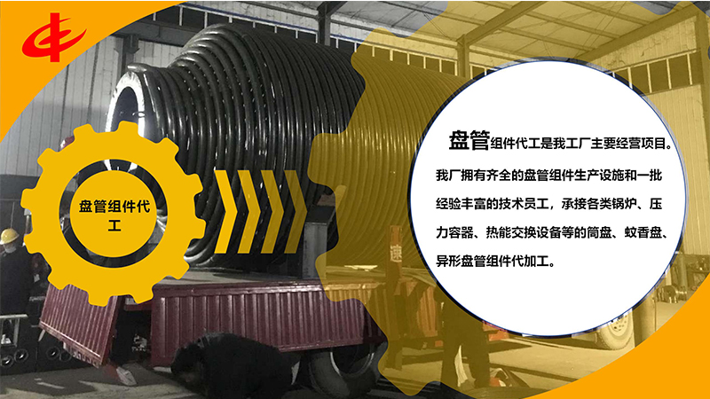 盤管組件代工是我工廠主要經營項目。我廠擁有齊全的盤管組件生產設施和一批經驗豐富的技術員工,承接各類鍋爐、壓力容器、熱能交換設備等的筒盤、蚊香盤、異形盤管組件代加工;